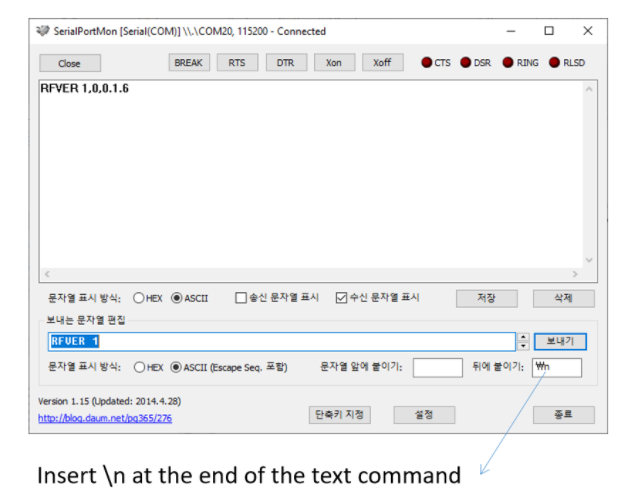 문자열 마지막에 \n붙여서 보내야 함.