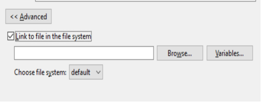 Link to file in the file system을 체크해서 파일 이름 입력창 활성화