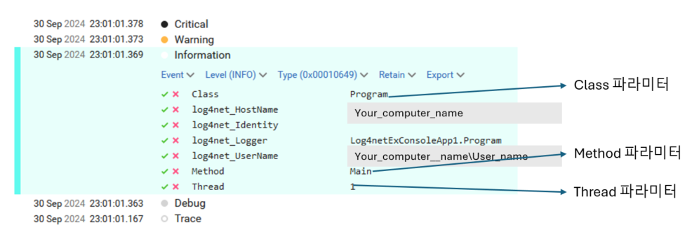 5. Log4netSetting.xml 설정파일의 로그출력 패턴 예