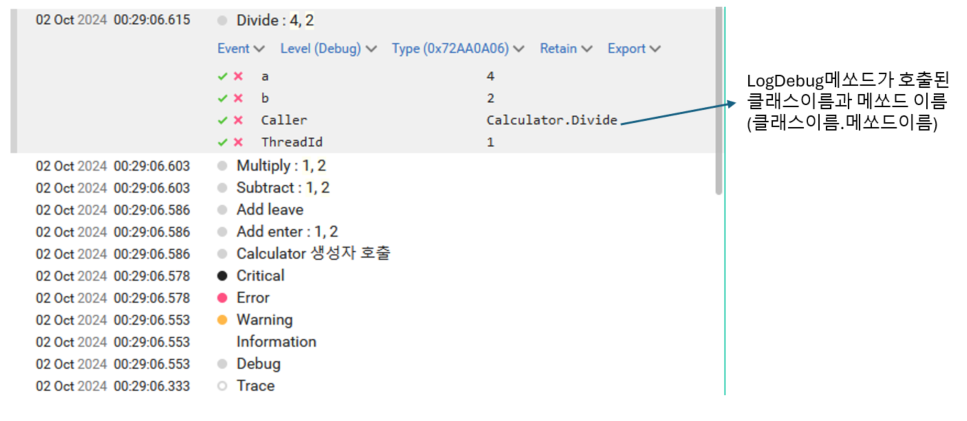 ${callsite:includeNamespace=false} : 로그출력 메쏘드가 호출된 클래스이름과 메쏘드이름